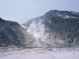 硫黄山 アイヌ語で、アトサヌプリ(裸の山)と呼ばれ、噴煙を上げる赤茶けた山肌が印象的な活火山。明治初期には、硫黄が採取されていたという。川湯温泉街から硫黄山までは、全長2.5kmのつつじヶ原自然探勝路が整備されており、7月上旬にはエゾイソツツジが咲く。駐車場横には硫黄山レストハウスがあり、いもだんご200円などが味わえます。 |