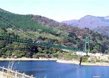 もみじ谷大吊橋 美しい渓谷に囲まれた塩原温泉には、多くの美しい吊橋が点在しています。中でも「もみじ谷大吊橋」は、無補剛桁吊橋歩道としては日本最長です。秋には橋上からダイナミックな紅葉が堪能できます。 |
