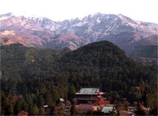 三仏堂と雪をいただく女峰山 輪王寺とは、お寺やお堂、さらに15の支院の総称で、勝道上人-しょうどうしょうにん-が天平神護-てんぴょうじんご-2(766)年、神橋-しんきょう-のそばに四本竜寺-しほんりゅうじ-を建立したのが始まり。山岳信仰の場として栄え、たくさんの行者-ぎょうじゃ-が修行に訪れた。平安時代の弘仁-こうにん-元(810)年、朝廷から一山-いっさん-の総号として満願寺-まんがんじ-の名をもらい、後に円仁-えんにん-が来山して天台宗となって、現在に至っている。鎌倉時代には、弁覚-べんがく-が光明院-こうみょういん-を創設して一山の本院とし、天皇家から門跡-もんぜき-を招く皇族座主の制度が始まった。しかし、安土桃山時代には小田原の北条氏に加担したため、豊臣秀吉に寺領を没収されて一時衰退した |