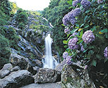 見帰りの滝 日本の滝百選。九州一を誇る落差100メートルの滝。ライトアップされた夜の景観も見ものです。 |