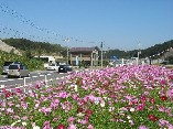 の道 沿いに 200万本のコスモスが咲いています。