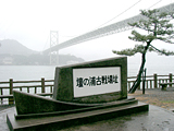 関門橋 関門海峡をまたぎ、下関市と北九州市門司区を結ぶ全長1068m、幅6車線の吊り橋。この地は源平古戦場「壇ノ浦」。平家の軍が押し込められ討ち取られた終焉の地だ。二位尼(にいのあま)に抱かれて安徳天皇が入水、平家による貴族政治が終わり、鎌倉幕府による武家政治が始まることになりました。 |